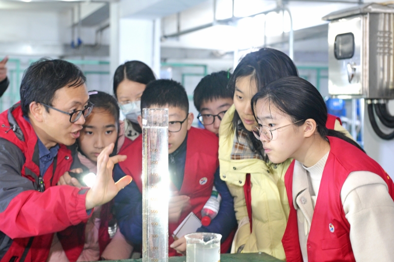活动以研学体验为载体,小记者们沿河畔步道沉浸式体验水生态美景,排水志愿者生动讲解市河水环境治理带来的生态嬗变,现场观摩与互动交流过程中,传播节水、爱水、护水的理念,携手共绘人水和谐的新时代江南水乡美好画卷。活动还来到广化桥超磁净水泵站现场,通过进出水的前后对比,进一步揭秘污水变清流的奇妙过程。有小记者不禁感叹:“今后一定要更加珍惜爱护水资源,还要告诉身边人一起保护我们的市河!”